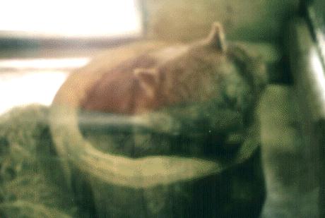 Sleepy afternoon in a wooden hole bed.